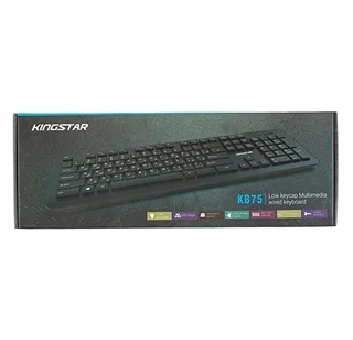 کیبورد کینگ استار مدل kb75 از نوع بی سیم میباشد و از طریق دانگل USB به کامپیوتر متصل میشود. این کیبورد دارای 103 کلید برای انجام فعالیتهای کامپیوتری است. همچنین کیبورد kb75 دارای 20 کلید میانبر به منظور انجام سریعتر کارهاست که عبارتند از Music, Volume +-, Nex Track, Pre. Track, Play/Pause, Stop, Web Home, email, My Computer, Favorite. کیبورد کینگ استار مدل kb75 برای استفادههای روزمره مناسب میباشد. از دیگر ویژگیهای این کیبورد محصول کمپانی کینگ استار، طراحی کلیدها به گونهای که امکان تایپ کردن در مدت زمانی طولانی را فراهم می کند، دسترسی راحت به تمامی کلید های کاربردی، طراحی نرم و سایلنت کلید ها، با دوام و دارای کلید های مات میباشد.