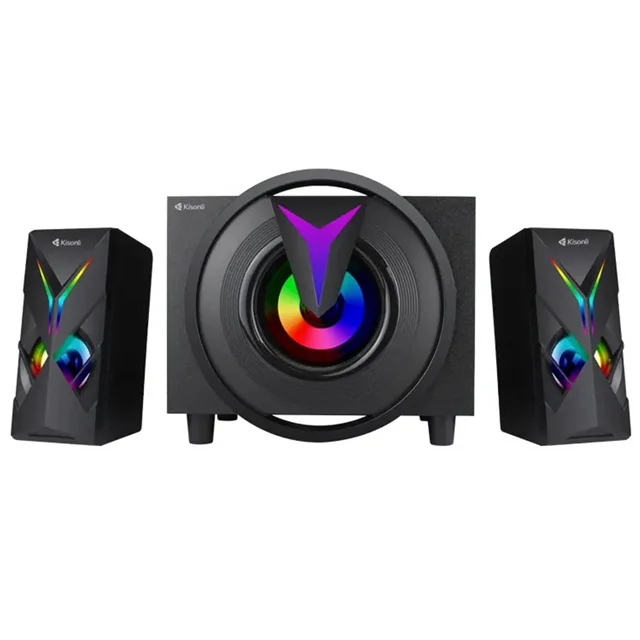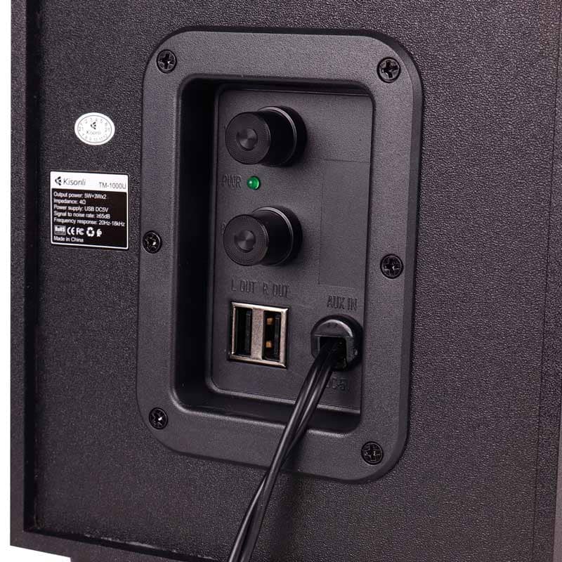 اسپیکر بلوتوث 3 تکه K10-BT یک اسپیکر سه تیکه باکیفیت است که یک اسپیکر اصلی و دواسپیکر کوچک همراه دارد. این اسپیکر دارای ابعاد حدودی اسپیکر بزرگ 15*20.3*22 سانتی متر و ابعاد اسپیکر کوچک 9.4*7.5*13.3 سانتی متر میباشد. اسپیکر 3 تکه بلوتوثی رم و فلش خور K10-BT از طریق کابل USB به منبع تغذیه وصل میشود و بلندگوهای همراه از طریق کابل AUX متصل میشود. از ویژگی های دیگر این بلندگوی جذاب قابلیت بلوتوث و فلش و رم میباشد که شما با داشتن این محصول دیگر نگران ارتباط اسپیکر نباشید و به راحتی از شنیدن موسیقی لذت ببرید.