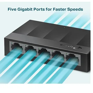 سوئیچ تی پی لینک Tp-Link LS1005G رومیزی 5 پورت دارای 5 پورت LAN است که هر کدام با سرعت 10/100/1000 مگابیت برثانیه کار میکند و از Auto-Negotiation, Auto-MDI/MDIX پشتیبانی میکنند. اتصال سوئیچ به چند کامپیوتر جهت اشتراکگذاری فایلها و اینترنت و یا ارتباط با یک روتر را فراهم مینماید.این سوئیچ انرژی خود را از آداپتور برق خارجی (خروجی: 5VDC/0.6A) تامین میکند و حداکثر مصرف برق آن 3.7W میباشد.