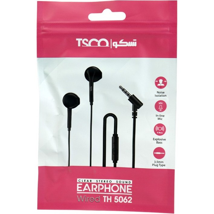 هندزفری تسکو مدل TH 5062 یک ایرفون با سیم است که توسط برند تسکو طراحی و تولید شده است. جنس استفاده شده از این هندزفری PVC است و طول کابل آن به 1.2 متر می رسد. رابط اتصال ایرفون سیمی تسکو TH5062 از طریق جک 3.5 میلی متری صدا(AUX) می باشد. فرکانس پاسخگویی هدفون سیمی تسکو TH -5062 از 20 هرتز تا 20 هزار هرتز است که یک میزان استاندارد و قابل قبول می باشد. هم اکنون می توانید برای خرید هندزفری تسکو مدل TH 5062 از همین صفحه اقدام نموده و محصول را به سبد خرید خود اضافه نمایید.