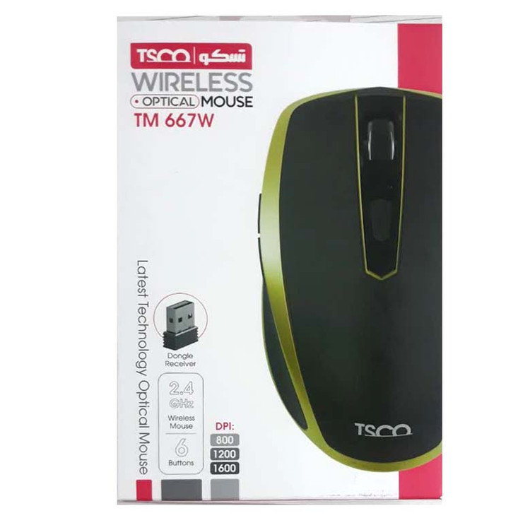 ماوس TM 667W تسکو طراحی جذاب و متفاوتی دارد.رنگ طلایی در مدل ترکیبی بهخصوص در حاشیههای ماوس استفاده شده که به آن ظاهری زیبا و شیک میبخشد.طراحی سطح رویی این ماوس از جنس پلاستیک مات بوده که باعث میشود انگشتان دست بهراحتی روی آن قرار بگیرد و سرعت عملکرد کاربر در هنگام کار با ماوس افزایش یابد.ماوس تسکو مدل TM 667W با یک دانگل به سیستم شما متصل میشود و ده متر برد اتصال دارد.این موس به جز سه دکمه اصلی اغلب ماوسها، سه دکمه دیگر هم دارد.این قابلیتها بهویژه برای افرادی که به جابهجایی سریع بین صفحات مرورگر نیاز دارند، بسیار کارآمد است و تجربهای راحت و کارآمد را به کاربر ارائه میدهد.علاوه بر اینها یک دکمه روشن و خاموش زیر این ماوس قرار دارد که میتوانید با کمک آن، موس را خاموش و روشن کنید.وجود این دکمه به صرفهجویی در مصرف باتری کمک میکند و باعث میشود که ماوس تنها در زمان نیاز روشن باشد.این موس از یک باتری AA تغذیه میکند