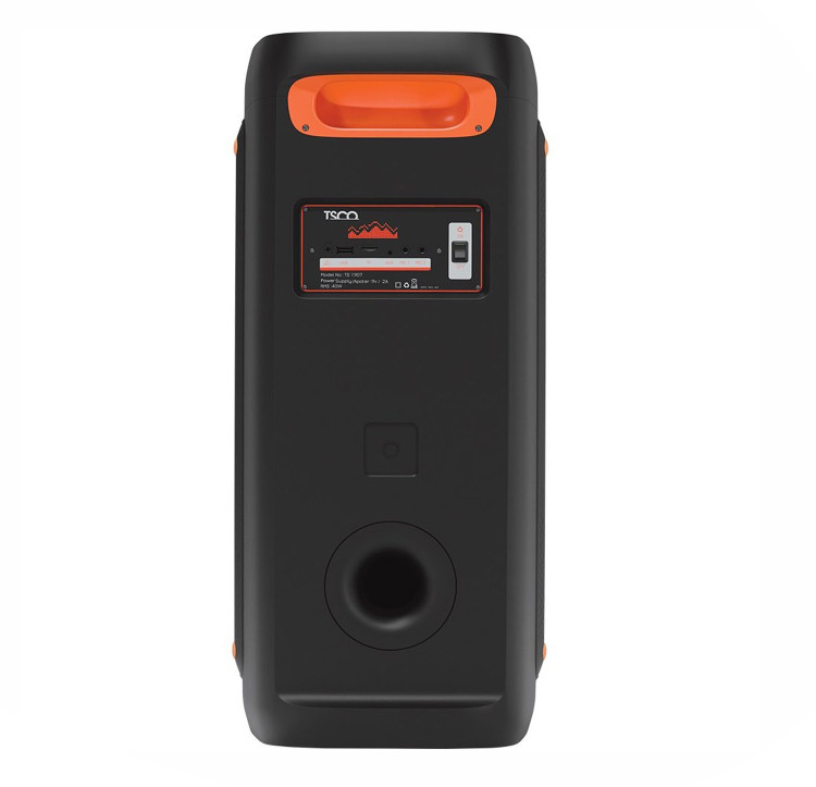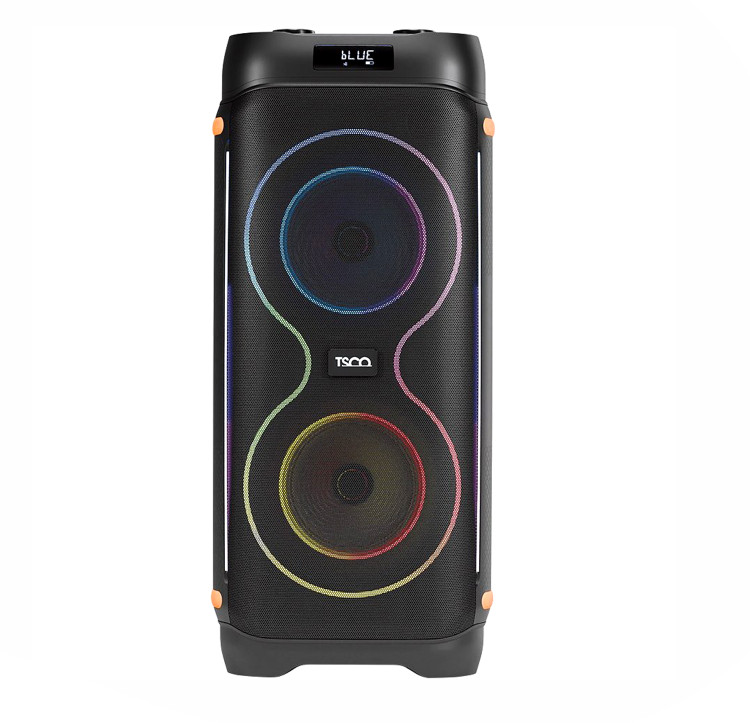 در قلب عملکرد صوتی TS 1906، یک سیستم تقویتکننده با توان محیطی 5500W و توان واقی 40 وات (RMS) دارد. دو ووفر 6.5 اینچی و یک تیوتر 3 اینچی، دامنه فرکانسی 35 هرتز تا 16 کیلوهرتز را پوشش میدهند. از یک باتری لیتیومی 7.4 ولت با ظرفیت 4000 میلیآمپر ساعت استفاده میکند. این باتری بسته به میزان حجم صدا، شارژدهی متفاوتی ارائه میدهد.اتصال بیسیم در این مدل از طریق بلوتوث نسخه 5.3 انجام میشود.1906 به طیف گستردهای از ورودیها مجهز شده تا محدود به بلوتوث نباشد. پورت USB، ورودی کارت TF، AUX، گیرنده رادیو FM و دو ورودی میکروفن، امکان اتصال همزمان چند منبع صدا را فراهم میکنند. این مدل همراه با یک میکروفن بلوتوث 2.4 گیگاهرتزی عرضه میشود که ارتباط سریع و بدون سیم را با دستگاه برقرار میکند. با ابعاد 640×300×300 میلیمتر طراحی شده که نسبت به کارایی صوتیاش، جمعوجور محسوب میشود. در بخش فوقانی دستگاه، یک نمایشگر کوچک تعبیه شده که اطلاعات ضروری مانند حالت پخش، میزان صدا و منبع ورودی را نمایش میدهد. تمامی کنترلهای صوتی و مدیریتی – از جمله تنظیم بلندی صدا (Volume)، میزان صدای میکروفن (Mic Volume)، افکت اکو (Echo)، تأخیر افکت (Delay)، تنظیم صدای بم (Bass)، فرکانسهای زیر (Treble)، مد تغییر ورودیها (MODE)، فعالسازی حالت ضبط صدا (REC)، کنترل نورپردازی (LED)، اولویت صدای میکروفن (Mic Priority)، اتصال همزمان دو اسپیکر (TWS) و حذف صدای خواننده (Vocal Cut) – همگی از طریق کلیدهای فیزیکی روی پنل جلویی دستگاه قابل تنظیم هستند.توانایی پخش صدا با زمان متغیر را دارد: حدود 50 دقیقه در حجم صدای کامل، 1.6 ساعت در 50٪ حجم، و تا 3.5 ساعت در کمترین حجم صدا.