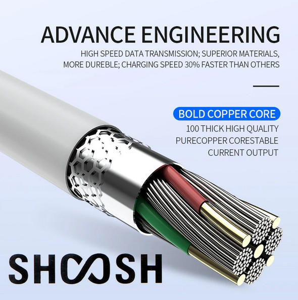 کابل فست شارژ تایپ سی شوش SHOOSH SH207C برای دستگاه هایی که مجهز به پورت تایپ سی هستند مناسب است. شدت جریان عبوری در کابل تایپ سی شوش مدل S207 C مقدار 5 آمپر است که برای شارژ تبلت هم مناسب است. این کابل دارای سرعت انتقال داده بالایی است. به طور کلی کابل های شوش از کانتکتورهای بسیار مقاوم برخوردارند که همین امر مانع از خوردگی و زنگ زدگی آن می شود.جنس این کابل تایپ سی از PVC بوده و در چند رنگ چذاب به بازار عرضه شده است. طول آن 110 سانتی متر است