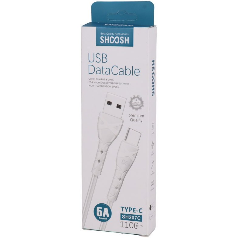 کابل فست شارژ تایپ سی شوش SHOOSH SH207C برای دستگاه هایی که مجهز به پورت تایپ سی هستند مناسب است. شدت جریان عبوری در کابل تایپ سی شوش مدل S207 C مقدار 5 آمپر است که برای شارژ تبلت هم مناسب است. این کابل دارای سرعت انتقال داده بالایی است. به طور کلی کابل های شوش از کانتکتورهای بسیار مقاوم برخوردارند که همین امر مانع از خوردگی و زنگ زدگی آن می شود.جنس این کابل تایپ سی از PVC بوده و در چند رنگ چذاب به بازار عرضه شده است. طول آن 110 سانتی متر است