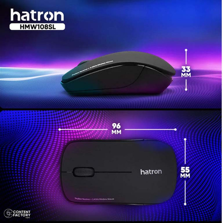 برند Hatron یکی از بهترین تولیدکنندگان موس و کیبورد و سایر لوازم جانبی در ایران است. ماوس «HMW108SL» از سری موسهای هترون است که بیصدا و بسیار خوشساخت است. این ماوس دارای 3 کلید بوده و نوع اتصال آن به سیستم از طریق دانگل مخصوص می باشد. طراحی ارگونومیک زیبا و شیک این ماوس برای استفاده طولانیمدت طراحی شده است که از فشار بیمورد بر دست جلوگیری میکند و بهراحتی در دست قرار میگیرد. ماوس HMW108SL دارای دقتDPI1200 است. فرکانس کاری این ماوس(و دانگلش) برابر 2٫4 گیگاهرتز است و تا 10 متر مسافت را پشتیبانی میکند. بهاینترتیب برای کنترل سیستم کامپیوتری خود، محدود به میز کار نبوده و بهراحتی از فاصله دور هم قادر به انجام کارهای کامپیوتری خود هستید. انرژی موردنیاز این ماوس از طریق یک عدد باتریقلمی AA تامین میشود.ویژگی بارز این مدل قابلیت Auto Power است که سبب صرفه جویی در مصرف باتری و طول عمر آن می شود. این ماوس با تمامی سیستمعاملهای رایج سازگاری دارد. طراحی آن مینیمال و ساده، و برای سیستمهای خانگی، اداری و بانکها انتخاب مناسبی به شمار میآید و توانسته در بین کاربران سیستمهای کامپیوتری توجه بسیاری از افراد را جلب کند.