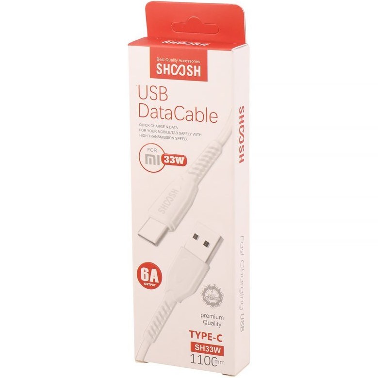 کابل توربو شارژ تایپ سی شوش SHOOSH SH33W 6A 110CM برای دستگاه هایی که مجهز به پورت تایپ سی به خصوص گوشی های شیائومی مناسب است. شدت جریان عبوری در کابل تایپ سی شوش مدل SHOOSH SH33W مقدار 6 آمپر است که برای شارژ گوشی های 33 وات شیائومی و مدل های های مشابه از برند های دیگر هم مناسب است. این کابل دارای سرعت شارژ بالایی است.