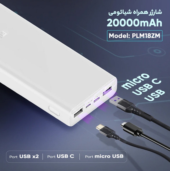 پاوربانک شیائومی مدل PLM18ZM ظرفیت 20000 میلی آمپر ساعت (صددرصد اورجینال)