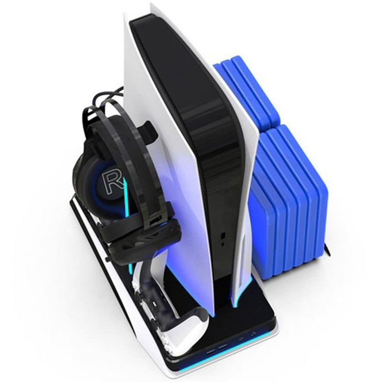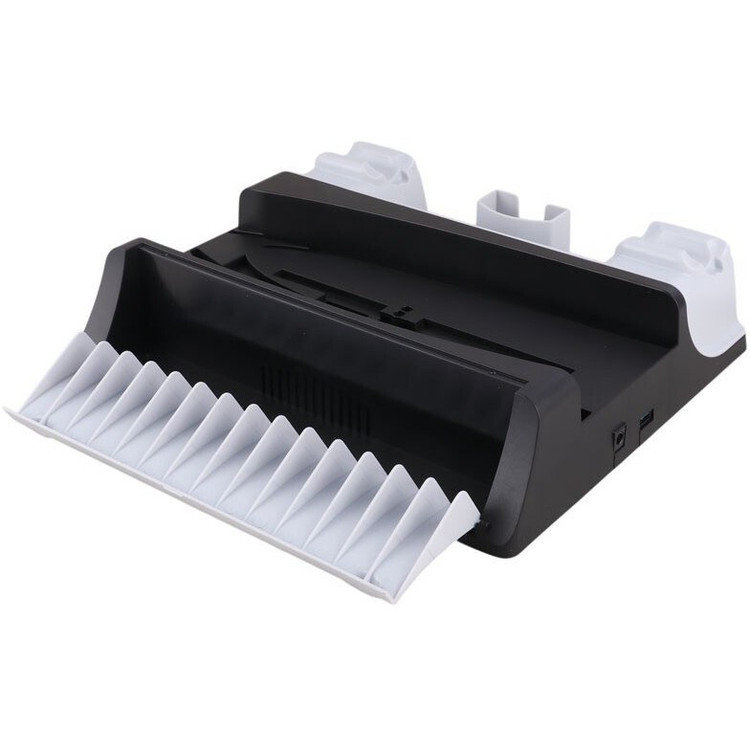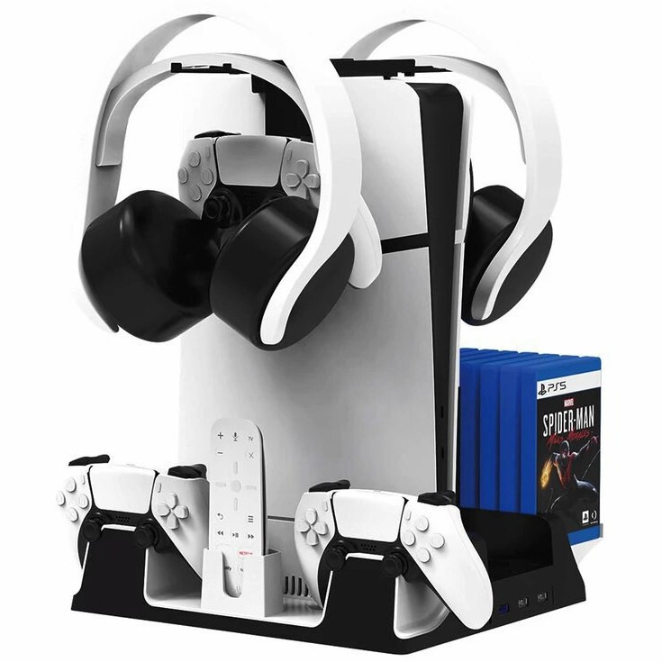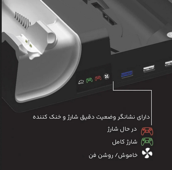 پایه نگهدارنده و شارژر پلی استیشن 5 تسکو مدل TGS 20 با بدنه پلاستیکی مثل یه دژ محکم برای PS5 (بهجز مدل پرو) ساخته شده. رنگهای مشکی و سفیدش انگار از دل دنیای PS5 دراومده. جای 2 هدست، ریموت، و 14 دیسک بازی، مثل قفسههای یه کتابخونه جادویی، همهچیز رو مرتب نگه میداره. پد ضدلغزش زیرش، این پایگاه رو روی میزت ثابت میکنه. سیستم محافظتی از باتری دستهها در برابر اضافهبار، گرمایش، یا اتصال کوتاه مثل یه سپر انرژی محافظت میکنه.فن خنککننده با یه دکمه، مثل یه سیستم تهویه پیشرفته، PS5 رو تو ماموریتهای سنگین مثل جلسه های طولانی God of War خنک نگه میداره. 3 پورت USB هاب انگار دروازههای اتصالن که گوشی، کیبورد، یا حتی یه لامپ LED رو به ستآپت وصل میکنن. LEDهای سفید (اتصال)، قرمز (شارژ)، و آبی (شارژ کامل) مثل چراغهای راهنما تو پایگاه، وضعیت دستهها رو نشون میدن.