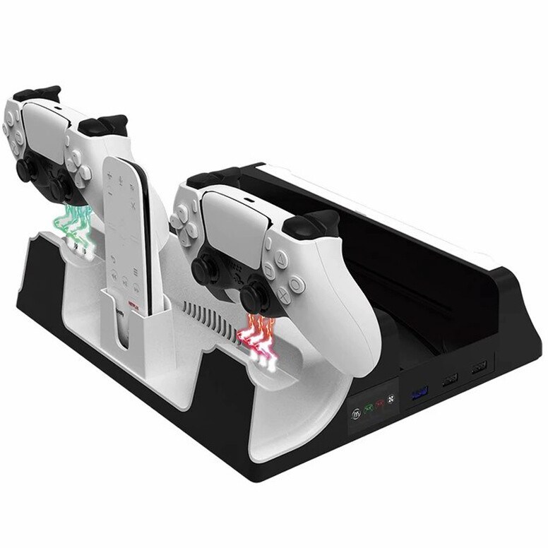 پایه نگهدارنده و شارژر پلی استیشن 5 تسکو مدل TGS 20 با بدنه پلاستیکی مثل یه دژ محکم برای PS5 (بهجز مدل پرو) ساخته شده. رنگهای مشکی و سفیدش انگار از دل دنیای PS5 دراومده. جای 2 هدست، ریموت، و 14 دیسک بازی، مثل قفسههای یه کتابخونه جادویی، همهچیز رو مرتب نگه میداره. پد ضدلغزش زیرش، این پایگاه رو روی میزت ثابت میکنه. سیستم محافظتی از باتری دستهها در برابر اضافهبار، گرمایش، یا اتصال کوتاه مثل یه سپر انرژی محافظت میکنه.فن خنککننده با یه دکمه، مثل یه سیستم تهویه پیشرفته، PS5 رو تو ماموریتهای سنگین مثل جلسه های طولانی God of War خنک نگه میداره. 3 پورت USB هاب انگار دروازههای اتصالن که گوشی، کیبورد، یا حتی یه لامپ LED رو به ستآپت وصل میکنن. LEDهای سفید (اتصال)، قرمز (شارژ)، و آبی (شارژ کامل) مثل چراغهای راهنما تو پایگاه، وضعیت دستهها رو نشون میدن.