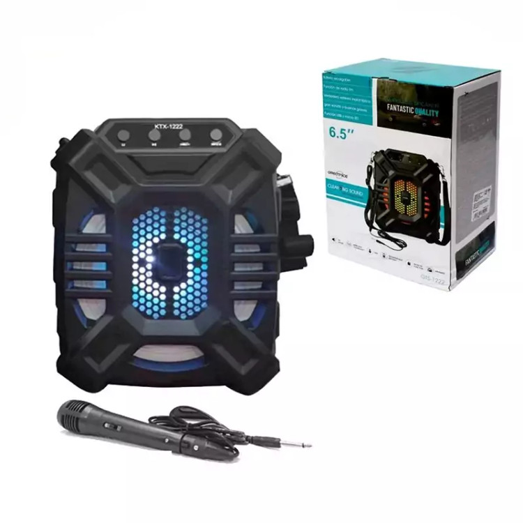 اسپیکر بلوتوثی قابلحمل مدل KTX-1222 محصولی است که با توجه به ساختار، صدای خروجی و البته قیمت، نمیتوان به راحتی از کنار آن گذشت. اسپیکری که سعی دارد تا با توجه به رده اقتصادی خود، لبخند رضایت را روی لب خریداران بنشاند. در بخش ظاهری اسپیکر بلوتوثی قابلحمل مدل KTX-1222 شاهد یک طراحی عام پسند هستیم به این معنی که قطعاً کاربران خاص نگاهی متفاوت به محصولات دارند. پشت بدنه اسپیکر هم حفرهای قرار گرفته تا دستگیرهای باشد برای حمل آسان تر بدون بند. در مجموع طراحی این اسپیکر قابل قبول است اما با توجه به سطح بودجهای که برای آن در نظر گرفته شده است، نباید در بخش متریال استفاده شده انتظار زیادی از آن داشت. در جعبه این اسپیکر بجز، خود محصول شاهد میکروفن، کابل شارژ و بند حمل هستیم.