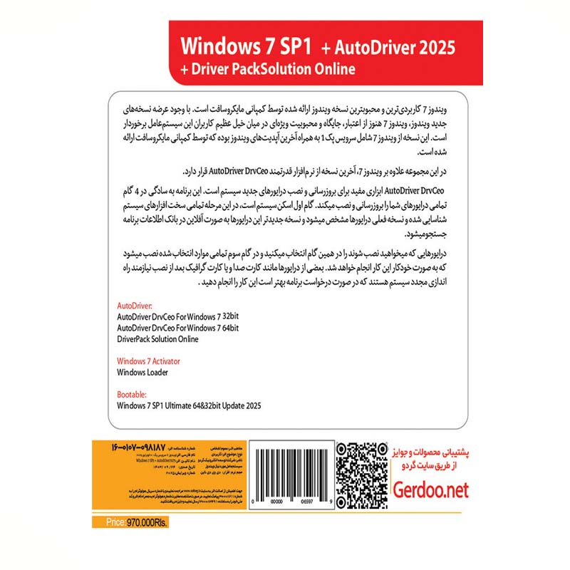 در این مجموعه علاوه بر ویندوز 7 آخرین نسخه از نرم افزار قدرتمند AutoDriver DrvCeo قرار دارد.