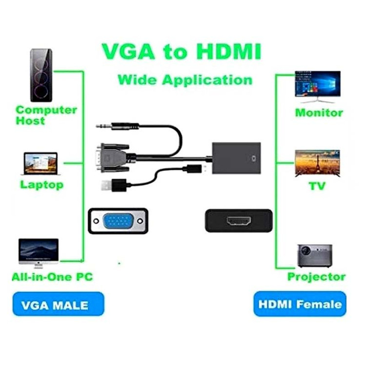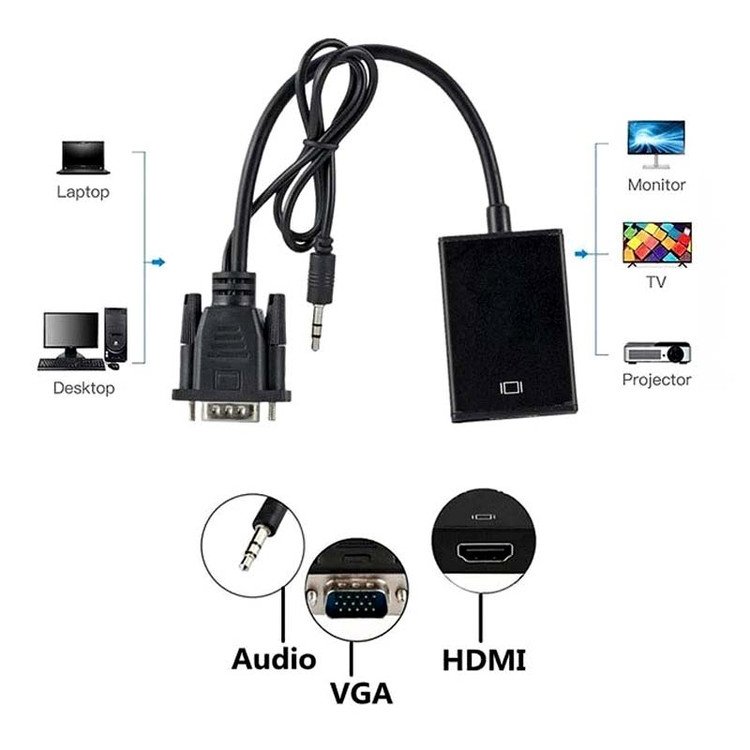 تبدیل VGA به HDMI وان مکس مدل OM-150 همراه با کابل صدا و Microusb مدل OM-150 یک مبدل بسیار کارآمد.طول 20 سانتی متر است که با استفاده از آن می توانید تصاویر فیلم یا بازی که میخواهید را از کامپیوتر یا لپتاپ. با رابط VGA بر روی نمایشگر مورد نظر با رابط HDMI مانند پروژکتور تلویزیون و… ببینید. تبدیل VGA به HDMI برند وان مکس (ONE MAX) دارای ورودی VGA و جک 3.5 میلیمتری (AUX) و خروجی HDMI است.برای اتصال لوازم قدیمی نیز به لب تاپ ها، کامپیوتر ها و تلوزیون های جدید بسیار کاربرد دارد. این تبدیل از رزولیشن 1920P و 1080P پشتیبانی می کند و بهترین کیفیت تصویر و صدا رو به شما ارائه میدهد.این محصول همراه با یک کابل برای تامین برق و یک کابل برای انتقال صدا عرضه می شود. نصب ساده و بدون نیاز به درایور طراحی کوچیک و جابه جایی راحت از ویژگی های این محصول است.