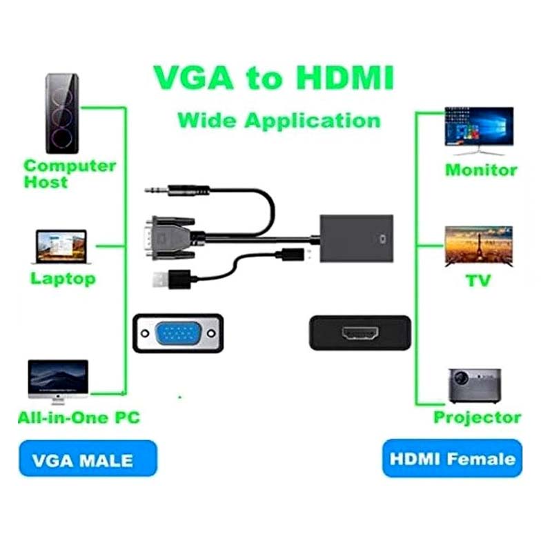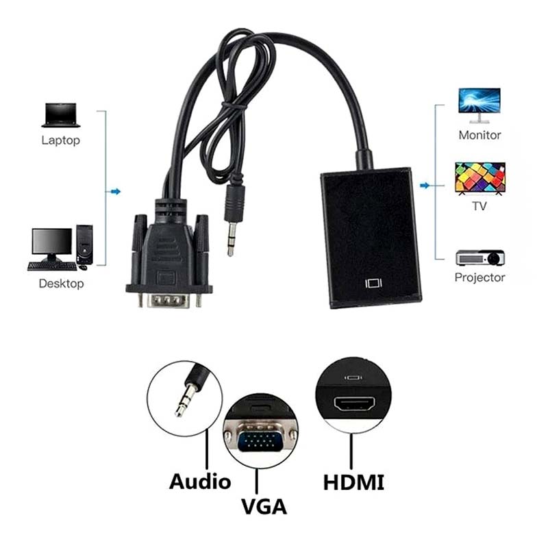 تبدیل VGA به HDMI وان مکس مدل OM-150 همراه با کابل صدا و Microusb مدل OM-150 یک مبدل بسیار کارآمد.طول 20 سانتی متر است که با استفاده از آن می توانید تصاویر فیلم یا بازی که میخواهید را از کامپیوتر یا لپتاپ. با رابط VGA بر روی نمایشگر مورد نظر با رابط HDMI مانند پروژکتور تلویزیون و… ببینید. تبدیل VGA به HDMI برند وان مکس (ONE MAX) دارای ورودی VGA و جک 3.5 میلیمتری (AUX) و خروجی HDMI است.برای اتصال لوازم قدیمی نیز به لب تاپ ها، کامپیوتر ها و تلوزیون های جدید بسیار کاربرد دارد. این تبدیل از رزولیشن 1920P و 1080P پشتیبانی می کند و بهترین کیفیت تصویر و صدا رو به شما ارائه میدهد.این محصول همراه با یک کابل برای تامین برق و یک کابل برای انتقال صدا عرضه می شود. نصب ساده و بدون نیاز به درایور طراحی کوچیک و جابه جایی راحت از ویژگی های این محصول است.