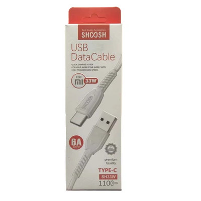 کابل توربو شارژ تایپ سی شوش SHOOSH SH33W 6A 110CM برای دستگاه هایی که مجهز به پورت تایپ سی به خصوص گوشی های شیائومی مناسب است. شدت جریان عبوری در کابل تایپ سی شوش مدل SHOOSH SH33W مقدار 6 آمپر است که برای شارژ گوشی های 33 وات شیائومی و مدل های های مشابه از برند های دیگر هم مناسب است. این کابل دارای سرعت شارژ بالایی است.به طور کلی کابل فست شارژ تایپ سی SHOOSH SH33W از کانتکتورهای بسیار مقاوم برخوردارند که همین امر مانع از خوردگی و زنگ زدگی آن می شود.جنس این کابل تایپ سی از PVC بوده و در چند رنگ چذاب به بازار عرضه شده است. طول آن 110 سانتی متر است
