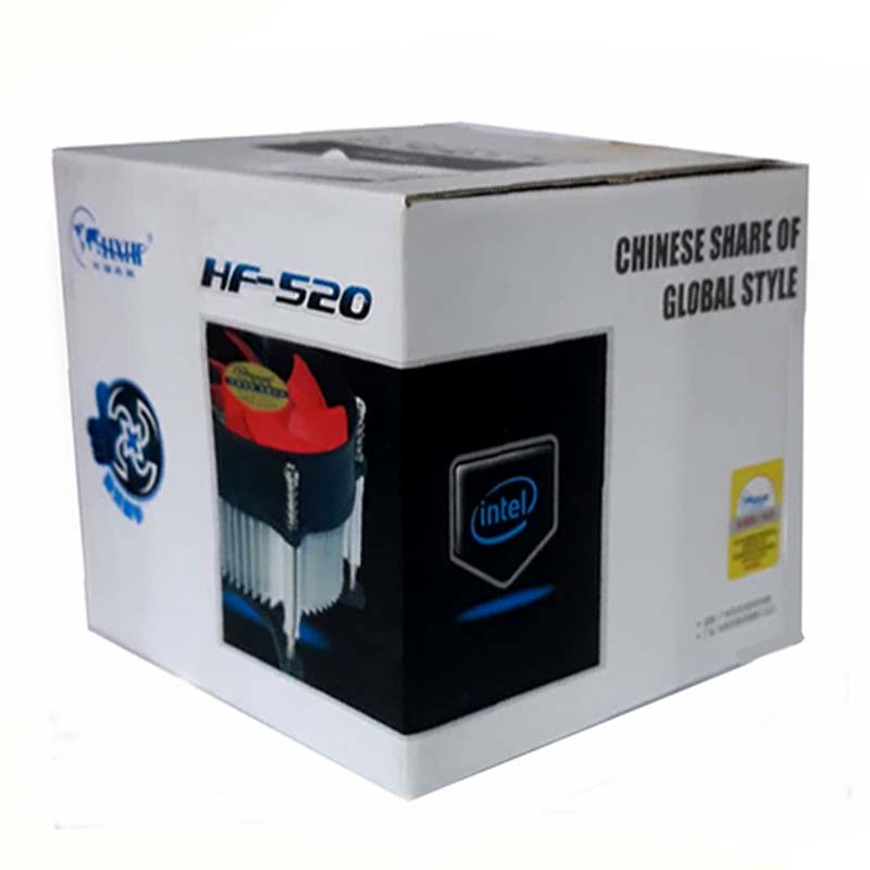 فن پردازنده (CPU) اینتل در گروه فنهای بادی قرار میگیرد. این فن CPU بهطور مستقیم با پردازنده در تماس است و میتواند حرارت را از پردازنده به محیط بیرون منتقل کند. این فن از فناوری Turbo Boostبهره میبرد که به یاری آن میتوان سرعت 700 تا 2200 RPM را در آن تجربه کرد. حداکثر نویز در این پردازنده برابر با 22 دسیبل است که میتوان آن را در گروه فنهای بی صدا دستهبندی کرد. شرکت اینتل این فن را از نوع Fluid Shield Bearing را برای این محصول در نظر گرفته است. کانکتور فن ارائه شده برای این محصول از نوع 4-Pin بوده ولتاژ کاری در آن برابر با 12 ولت است. فن پردازندهی اینتل با سوکتهای LGA1156, LGA1155, LGA1151, LGA1150, LGA775 شرکت اینتل و AM4 , AM3+, AM2+ , FM2+ , FM1 سازگار است.
