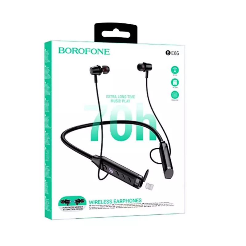 هندزفری بلوتوثی بروفون مدل BE66 با استندبای 800 ساعت و مدت زمان مکالمه و پخش موسیقی 70 ساعت طراحی و تولید شده است.برد اتصال بلوتوث 10 متر می باشد.گوشی های این هندزفری قابلیت مگنتی دارد و همچنین از کارت حافظه نیز پشتیبانی می کند.