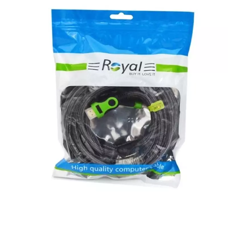 این کابل اچ دی ام ای شرکت ROYAL دارای 5 متر طول با کیفیت 4K و ورژن 2.0 می باشد که از 19+1 رشته سیم تشکیل شده است. این کابل HDMI قابلیت انتقال تصاویر 4K با 60 هرتز را دارد و سرعت انتقال آن به 18 گیگابایت بر ثانیه می رسد. از طرفی می توان گفت برای کنسول های بازی مثل PS4 و ایکس باکس و DVR دوربین مداربسته و کامپیوتر و لپتاپ در تلویزیون های فول اچ دی و 4K بسیار مناسب می باشد. روکش کابل از PVC می باشد که هم منعطف و هم مقاومت خوبی دارد.