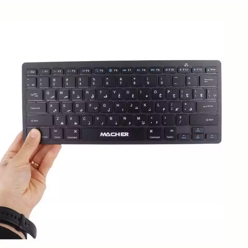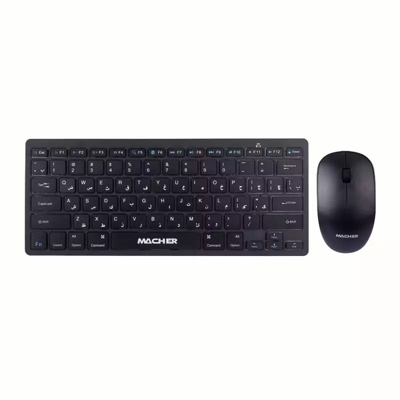 ست کیبورد و ماوس بی سیم مچر مدل MR-414 بهره مند از یک نشانگر LED جهت آگاهی از وضعیت شارژ باتری موفق به کسب استاندارد های سلامت فیزیکی محصول CE و RoHS کیبورد دارای 78 عدد کلید فیزیکی با حروف فارسی حک شده بر روی آن طراحی شده به صورت ارگونومیک جهت جلوگیری از خستگی دست کاربر منبع تغذیه کیبورد یک عدد باتری AA، منبع تغذیه موس یک عدد باتری AA نحوه اتصال ماوس و کیبورد به سیستم توسط دانگل USB به صورت بی سیم بدنه ساخته شده از متریال پلاستیک با کیفیت، مقاوم در برابر فشار و ضربه احتمالی موس شامل 3 کلید، مجهز به حسگر از نوع اپتیکال، فرکانس بی سیم موس 2٫4 گیگاهرتز