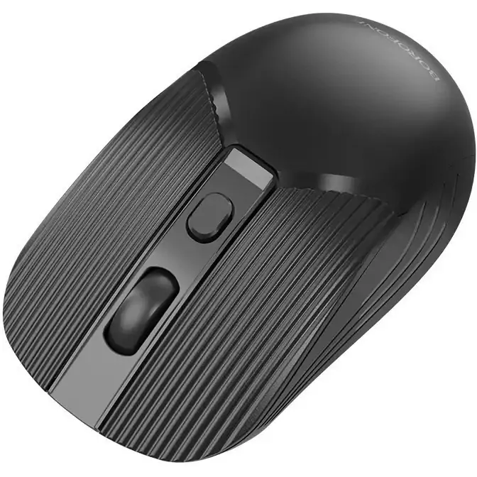 ماوس بی سیم بروفون مدل BOROFONE BG5 بسیار خوش دست و با کیفیت که با کلید DPI به سه سرعت 800 ، 1200 و 1600 قابل تنظیم می باشد. ماوس بی سیم بروفون مدل BOROFONE BG5 برای ارتباط با سیستم از یک دانگل وایرلس استفاده می کند که زیر ماوس جاسازی شده است.