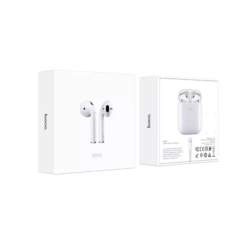 ایرپادز هوکو مدل EW25 با کیفیت عالی و یکسال گارانتی با برد بلوتوث 10 متر و ظاهری شیک و زیبا طراحی و تولید شده است.دارای باتری 300 میلی آمپر ساعت بوده و مدت زمان نگه داری شارژ در حالت پخش موسیقی و مکالمه حدود 4 ساعت است.با گوشی های آیفون، ای پاد، اپل TV، اپل واچ و کامپیوترهای مک با آخرین نسخه سیستمعامل،همه گوشی های دارای بلوتوث سازگار می باشد.اگر به دنبال یک هندزفری بلوتوثی برای گیمینگ, مکالمه, موزیک, ورزش می گردید این مورد برای شما مناسب است.