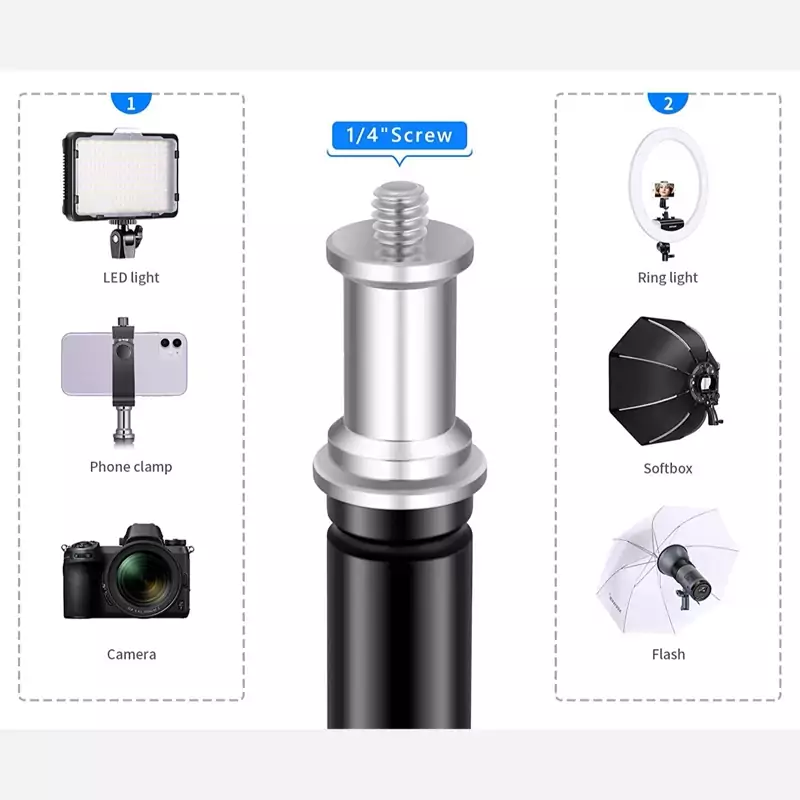 ه پایه فلزی 180 سانتی سه پایه ای مقاوم و با ساخت و کیفیت عالی مناسب فلاش های نورپردازی سبک در داخل استودیو و یا حتی فضاهای خارجی می باشد.جنس بدنه این سه پایه از آهن و اتصالاتی از جنس پلاستیک فشرده دارد.با وجود اینکه وزن این محصول بسیار کم است تا حمل ونقل آن راحت شود این محصول میتواند وزن بیشتری را نسبت به سایر مدل ها تحمل کند.سه پایه نورپردازی PK-T504 دارای حداقل ارتفاع 70 سانتی متر و حداکثر 190 سانتی متر می باشد. سری این محصول قابلیت چرخش و تنظیم دارد و شما میتوانید حتی عمود بر زمین نیز از محصول استفاده کنید.از ویژگی های دیگر این سه پایه این است که قطعات یدکی آن توسط شرکت سازنده به صورت جداگانه به فروش می رسد و در صورتی که آسیبی به قطعات وارد شد قطعات یدکی این کالا را میتوانید جدا خریداری کنید. این سه پایه نور ایده آل برای نورپردازی، عکاسی صنعتی تبلیغاتی و پرتره و مدلینگ می باشد.