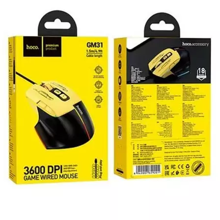 هوکو مدل GM31 یک ماوس گیمینگ سیم دار با کلید های سایلنت و 7 افکت نوری مختلف و روکش کابل بافته شده کنفی برای شما گیمر های حرفه ای طراحی شده است.محدوده دقت ماوس 1600 تا 3200 DPI بوده و با تمامی سیستم عامل ها سازگار است.