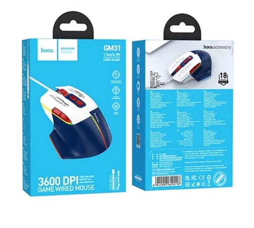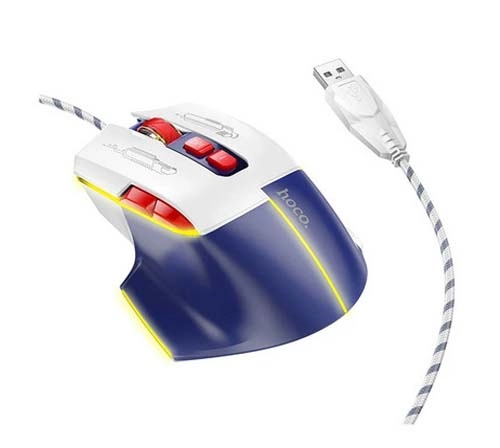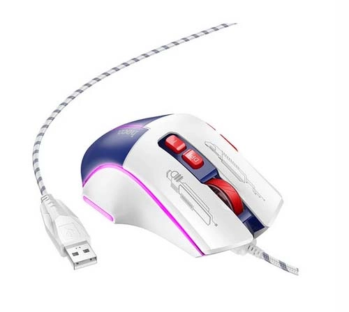 هوکو مدل GM31 یک ماوس گیمینگ سیم دار با کلید های سایلنت و 7 افکت نوری مختلف و روکش کابل بافته شده کنفی برای شما گیمر های حرفه ای طراحی شده است.محدوده دقت ماوس 1600 تا 3200 DPI بوده و با تمامی سیستم عامل ها سازگار است.