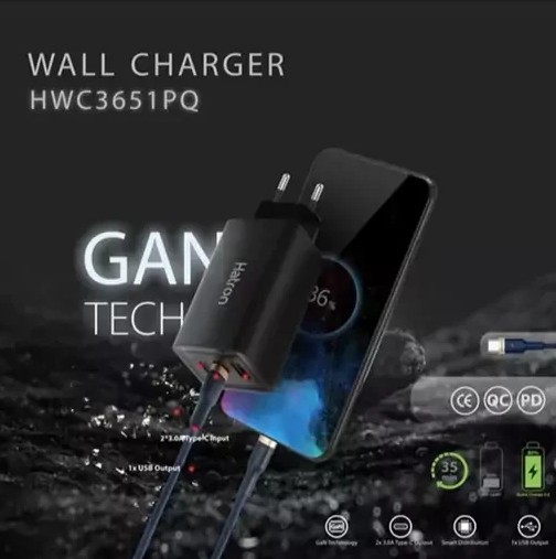 شارژر گوشی 65 وات هترون مدل HWC 3651 PQ GaN به همراه کابل