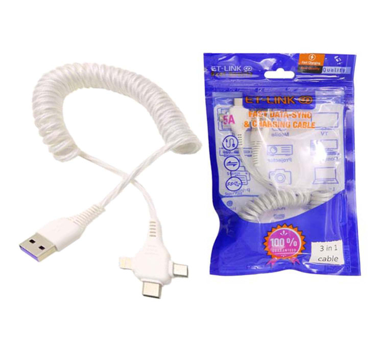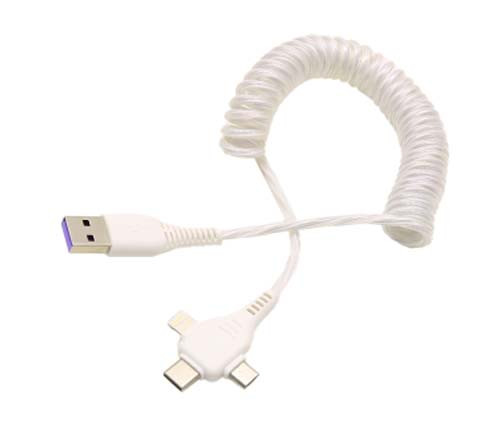 این کابل شارژ قابلیت تبدیل USB به سه سر Lightning , Micro USB , Type-C را دارا می باشد.به وسیله این کابل پاوربانکی بدون نیاز به حمل سه عدد کابل با رابط های مختلف سهولت را در شارژ به وجود بیاورید.حداکثر جریان خروجی کابل 1.5 آمپر بوده و جنس کابل روکش پلاستیکی فنری بسیار مقاوم می باشد.