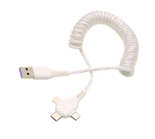 این کابل شارژ قابلیت تبدیل USB به سه سر Lightning , Micro USB , Type-C را دارا می باشد.به وسیله این کابل پاوربانکی بدون نیاز به حمل سه عدد کابل با رابط های مختلف سهولت را در شارژ به وجود بیاورید.حداکثر جریان خروجی کابل 1.5 آمپر بوده و جنس کابل روکش پلاستیکی فنری بسیار مقاوم می باشد.