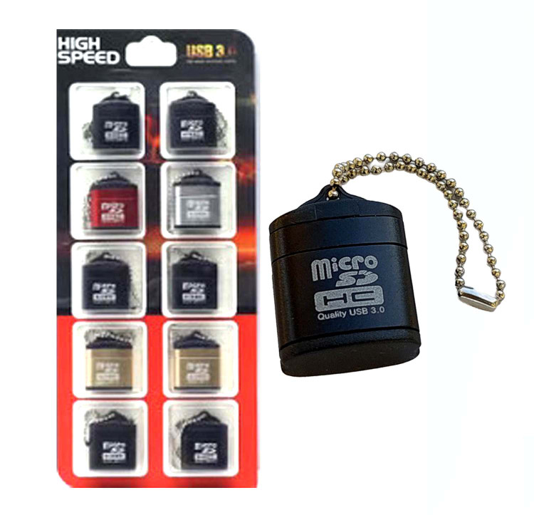 رمریدر مدل Micro-SD با ابعاد کوچک و وزن کمی که دارد میتوانید آن را همیشه همراه خود داشته باشید، به راحتی در جیب لباستان و کیف جا می شود. دارای یک زنجیر که قابلیت اتصال به دسته کلید دارد و همچنین دارای درپوش برای جلوگیری از آسیب دیدن مموری می باشد. این رمریدر Micro-SD از نوع USB3.0 می باشد که دارای انتقال سرعت بالایی است و از کیفیت و عملکرد بسیار خوبی برخوردار است. طراحی این رمریدر به گونه ای است که مموری SD از ریدر خارج نمی شود تا ضربه ای بخورد و یا شکستگی ایجاد شود. میتوانید آن را به کامپیوتر یا لپتاپ تان وصل کنید و انتقال اطلاعات تحت رابط USB 3.0 را انجام شود.