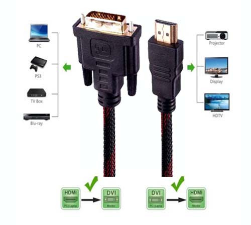 کابل تبدیل HDMI به DVI دارای کانکتور HDMI و DVI که جنس این کانکتورها فلزی و طول این کابل 150 سانتی متر می باشد.جنس بدنه این کابل بافته شده با الیاف نایلونی و دارای نویزگیز و محافظ پلاستیکی سوکت می باشد. این کابل در برابر هرگونه آسیب خارجی ، بریدگی و تاب خوردگی بسیار مقاوم بوده و کیفیت سوکت های اتصال آن بسیار بالا است .این کابل سازگار با انواع کامپیوترها و دستگاههای پخش تصویر مانند مانیتورها وتلویزیون می باشد.