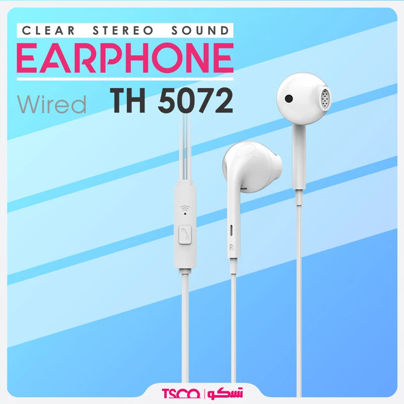 ایرفون «TH 5072» محصولی دیگر از TSCO است که جزو هدفونهای توگوشی یا ایرفون (Earphone) بهشمار میرود. به منظور استفاده از این محصول کافی است جک ایرفون 3.5 میلیمتری آن را به گوشی هوشمند خود متصل کرده و از تجربه گوش دادن به موسیقی لذت ببرید؛ با استفاده از این محصول به راحتی میتوانید به تماسهای تلفنی خود پاسخ دهید و همچنین با استفاده از طول کابل 1.2 متری این محصول، استفاده از آن آسانتر شده و میتوانید به راحتی گوشی موبایل خود را درون جیب و یا کیف خود قرار دهید.
