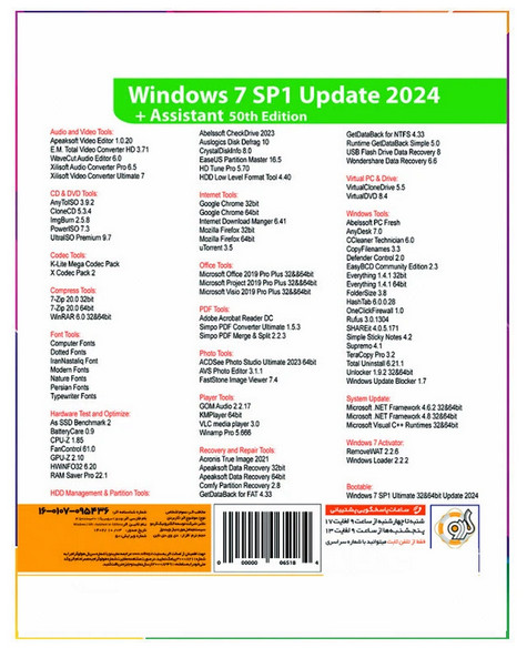 ویندوز 7 سرویس پک 1 همراه با آخرین بروزرسانی رسمی و فعالسازی خودکار در دو ساختار 32 و 64 بیتی،مجموعه ای بی نظیر از نرم افزارها و ابزارهای عمومی و کاربردی مناسب کاربران مبتدی و حرفه ای، نسخه جدید نرم افزار Office 2019 سازگار با ویندوزهای 7، 8.1 و 10،اتوران اختصاصی به همراه راهنمای نصب فارسی.