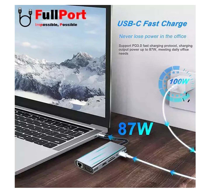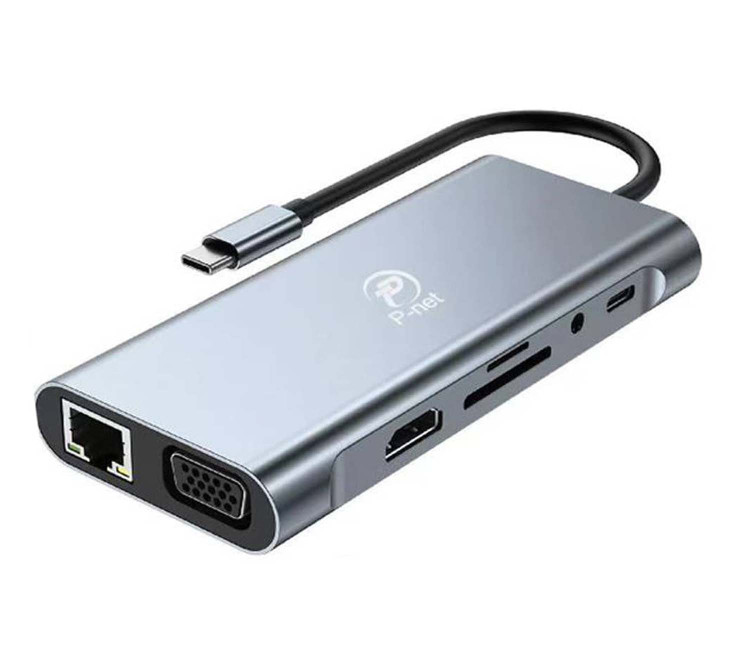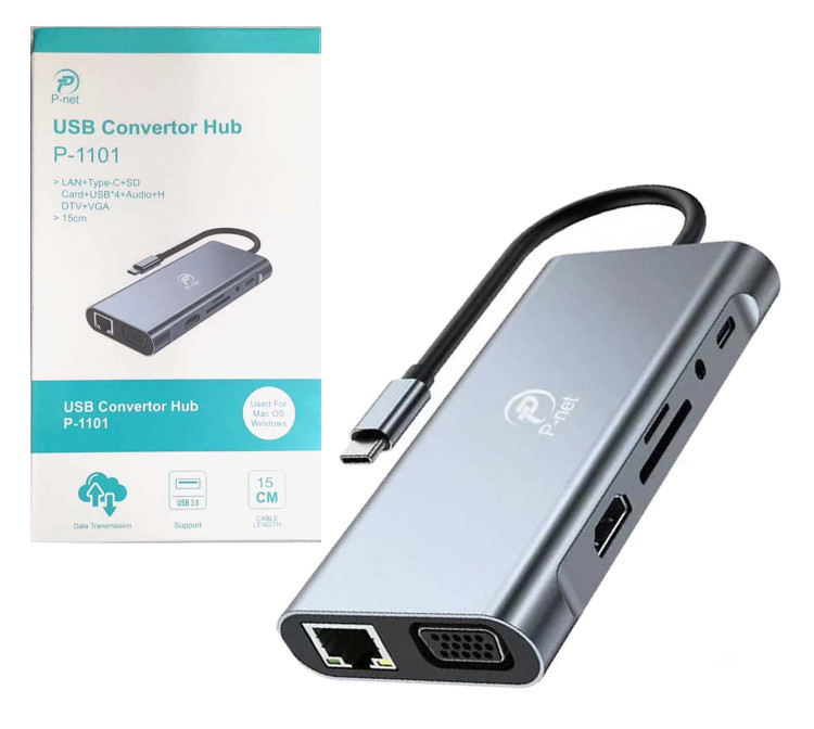 هاب 7 در 1 با پورت LAN، Type-C، SD، 4 عدد USB، Audio، HDMI و VGA | کابل 15 سانتیمتری | مناسب برای لپتاپ و مکبوک هاب USB 3.0 P-NET مدل P-1101 یک دستگاه چندمنظوره و بسیار کاربردی برای افزودن قابلیتهای متعدد به لپتاپ یا مکبوک شماست. با این هاب، میتوانید بدون نیاز به چندین آداپتور، تمام نیازهای اتصالی خود را با یک دستگاه حل کنید.
