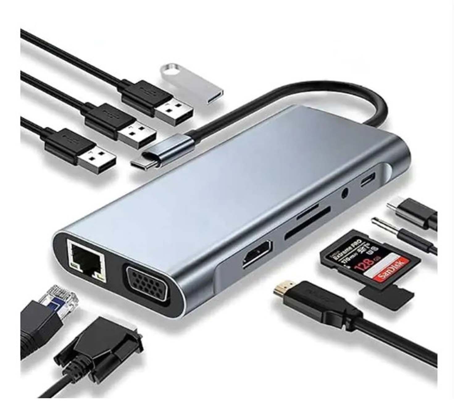 هاب 7 در 1 با پورت LAN، Type-C، SD، 4 عدد USB، Audio، HDMI و VGA | کابل 15 سانتیمتری | مناسب برای لپتاپ و مکبوک هاب USB 3.0 P-NET مدل P-1101 یک دستگاه چندمنظوره و بسیار کاربردی برای افزودن قابلیتهای متعدد به لپتاپ یا مکبوک شماست. با این هاب، میتوانید بدون نیاز به چندین آداپتور، تمام نیازهای اتصالی خود را با یک دستگاه حل کنید.