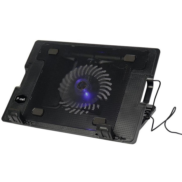 هرچقدر شرکت های سازنده لپ تاپ تعداد و قدرت فن های خود را بالا ببرند باز هم لپتاپ شما هنگام کارهای سنگینی مثل استفاده از فتوشاپ و اجرای بازی به دمای بالایی می رسد. حرارت بالا برای اجزای داخلی لپ تاپ بسیار خطرناک است، بطوریکه احتمال از کار افتادن پردازنده یا کارت گرافیک شما وجود دارد. شرکت P-net یکی از شرکت هایی است که در زمینه ساخت لوازم جانبی موبایل و کامپیوتر متنوع فعالیت دارد و همواره سعی در رفع نیاز تمام کاربران دارد. P-net P-701 از نمونه محصولات این شرکت است که با یک فن بزرگ که روی آن گنجانده شده خیال شما را از بابت تهویه هوای داخلی لپتاپتان راحت می کند. پی-نت مدل پی 701 از طریق کابل USB که به کول پد متصل می شود، به لپتاپ شما وصل شده و به سادگی شروع به کار می کند. به طور کلی 4 پورت یو اس بی روی این کول پد ایجاد شده است که یکی از آن ها برای تامین برق P-701 به کار می رود و از مابقی آن ها می توانید برای انتقال اطلاعات و داده ها استفاده نمایید، البته این کار سرعت چندانی ندارد. بهتر است که از این پورت ها برای وصل کردن دسته بازی و… استفاده کنید. همچنین یک پورت Mini USB نیز روی آن وجود دارد که شما می توانید از طریق آن، فقط به شارژ کردن وسایلی که درگاه مینی یو اس بی دارند بپردازید. زیر این خنک کننده لپتاپی، یک پایه قابل تنظیم وجود دارد که با استفاده از آن می توانید شیب مورد نیاز خود برای زمانیکه لپ تاپ روی کولپد قرار دارد را در 5 حالت تنظیم کنید. همچنین امکان قرار دادن دو نگهدارنده در جلوی کول پد برای جلوگیری از لیز خوردن لپتاپ، وجود دارد. طراحی ارگونومیک این محصول به شکلی است که با قرار دادن لپتاپ روی آن، چشمان شما اذیت نمی شوند و در نتیجه عملکرد بهتری خواهید داشت. طول کابل لینک USB موجود در پک این محصول، به 600 میلی متر می رسد که نیاز شما را از این بابت رفع می کند و جای نگرانی باقی نمی گذارد.