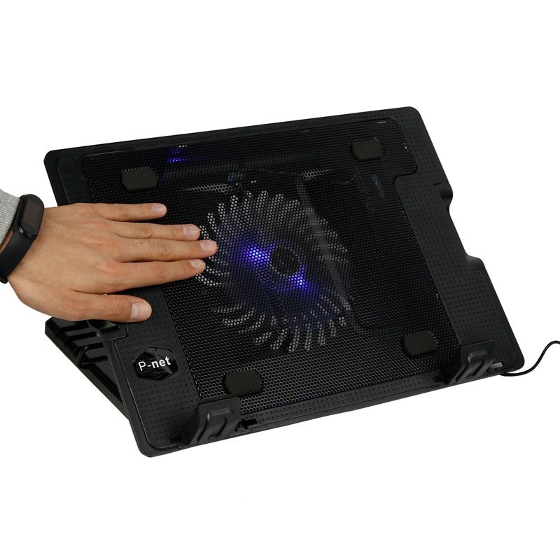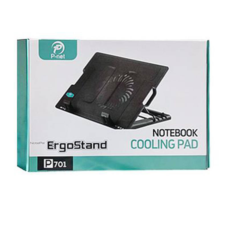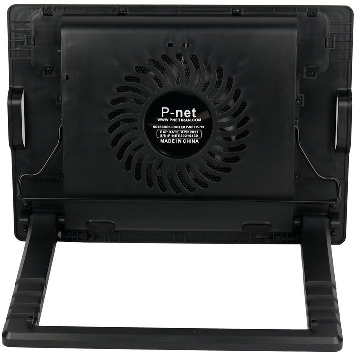 هرچقدر شرکت های سازنده لپ تاپ تعداد و قدرت فن های خود را بالا ببرند باز هم لپتاپ شما هنگام کارهای سنگینی مثل استفاده از فتوشاپ و اجرای بازی به دمای بالایی می رسد. حرارت بالا برای اجزای داخلی لپ تاپ بسیار خطرناک است، بطوریکه احتمال از کار افتادن پردازنده یا کارت گرافیک شما وجود دارد. شرکت P-net یکی از شرکت هایی است که در زمینه ساخت لوازم جانبی موبایل و کامپیوتر متنوع فعالیت دارد و همواره سعی در رفع نیاز تمام کاربران دارد. P-net P-701 از نمونه محصولات این شرکت است که با یک فن بزرگ که روی آن گنجانده شده خیال شما را از بابت تهویه هوای داخلی لپتاپتان راحت می کند. پی-نت مدل پی 701 از طریق کابل USB که به کول پد متصل می شود، به لپتاپ شما وصل شده و به سادگی شروع به کار می کند. به طور کلی 4 پورت یو اس بی روی این کول پد ایجاد شده است که یکی از آن ها برای تامین برق P-701 به کار می رود و از مابقی آن ها می توانید برای انتقال اطلاعات و داده ها استفاده نمایید، البته این کار سرعت چندانی ندارد. بهتر است که از این پورت ها برای وصل کردن دسته بازی و… استفاده کنید. همچنین یک پورت Mini USB نیز روی آن وجود دارد که شما می توانید از طریق آن، فقط به شارژ کردن وسایلی که درگاه مینی یو اس بی دارند بپردازید. زیر این خنک کننده لپتاپی، یک پایه قابل تنظیم وجود دارد که با استفاده از آن می توانید شیب مورد نیاز خود برای زمانیکه لپ تاپ روی کولپد قرار دارد را در 5 حالت تنظیم کنید. همچنین امکان قرار دادن دو نگهدارنده در جلوی کول پد برای جلوگیری از لیز خوردن لپتاپ، وجود دارد. طراحی ارگونومیک این محصول به شکلی است که با قرار دادن لپتاپ روی آن، چشمان شما اذیت نمی شوند و در نتیجه عملکرد بهتری خواهید داشت. طول کابل لینک USB موجود در پک این محصول، به 600 میلی متر می رسد که نیاز شما را از این بابت رفع می کند و جای نگرانی باقی نمی گذارد.