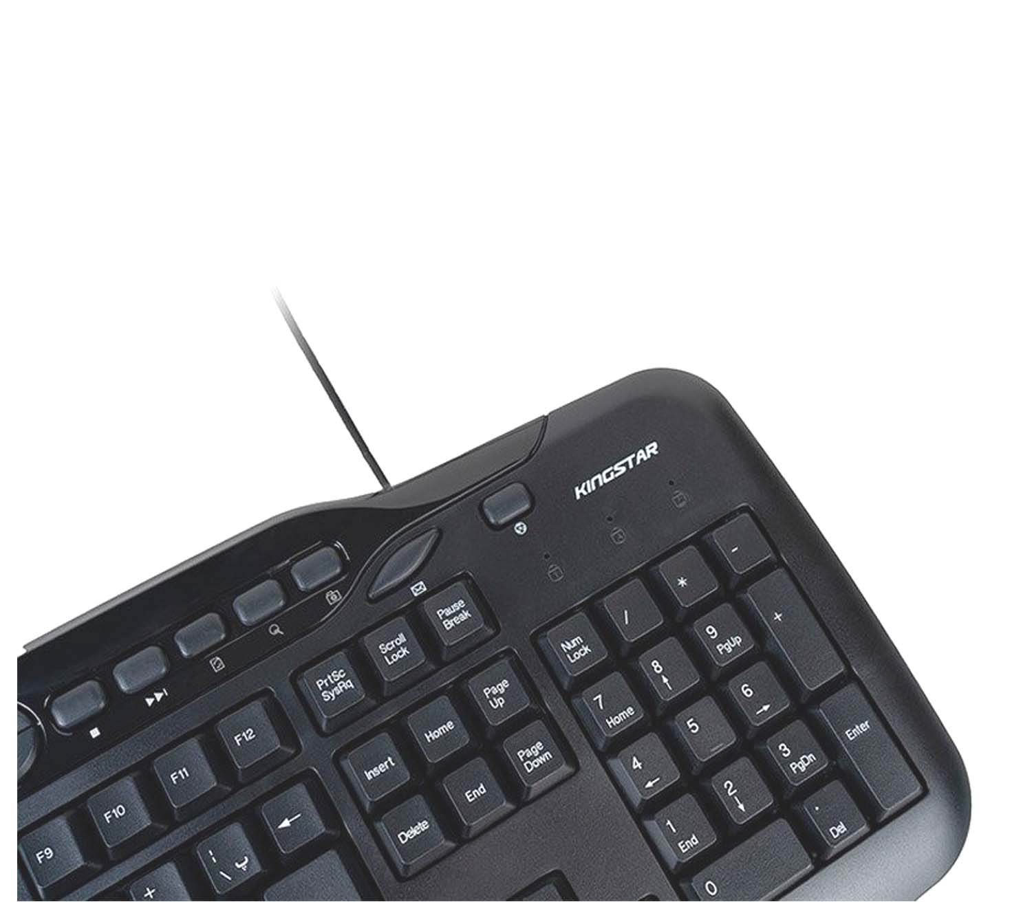 کیبورد کینگ استار مدل kb76 از نوع سیم دار میباشد و از طریق درگاه USB به کامپیوتر متصل میشود. این کیبورد دارای 122 کلید برای انجام فعالیتهای کامپیوتری است. همچنین کیبورد kb76 دارای 18 کلید میانبر به منظور انجام سریعتر کارهاست که عبارتند از Search, Dormant, Refresh, Back, Forward, Power, E-mail, Music, Play/Pause, Pre Track, Next Track, Volume +-, Web Home, My Computer. کیبورد کینگ استار مدل kb76 برای استفادههای روزمره مناسب میباشد. از دیگر ویژگیهای این کیبورد محصول کمپانی کینگ استار، طراحی کلیدها به گونهای که امکان تایپ کردن در مدت زمانی طولانی را فراهم می کند، دسترسی راحت به تمامی کلیدهای کاربردی، طراحی نرم و سایلنت کلیدها، با دوام و دارای کلیدهای مات میباشد. امروزه محصول Kb76 کمپانی کینگ استار به دلیل داشتن کلیدهای بی صدا هنگام تایپ توجه بسیاری را به خود جلب کرده و همین امر موجب شده تا به یکی از پرفروش ترین محصولات کینگ استار تبدیل شود.